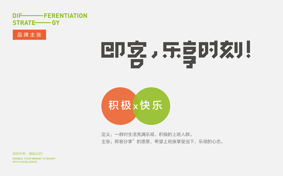 即客,樂享時刻。我們定義并通過視覺化表現(xiàn)來詮釋“樂享”主張。簡約、流動、張力的視覺符合結(jié)合品牌理念和產(chǎn)品賣點貫穿始終,塑造出一個年輕并賦予消費者健康快樂的品牌體驗。