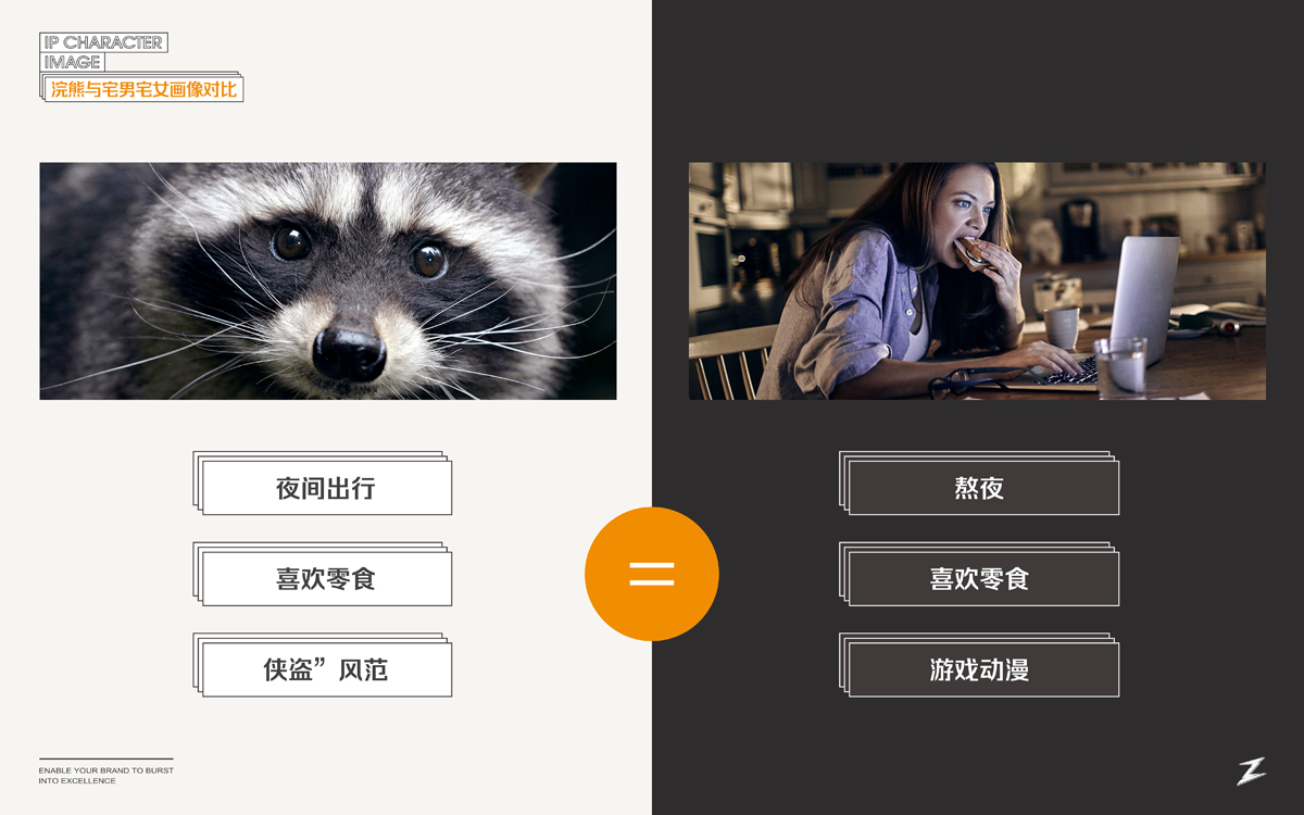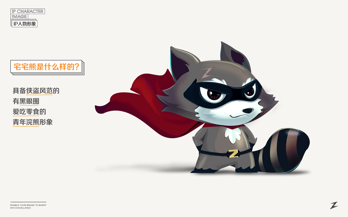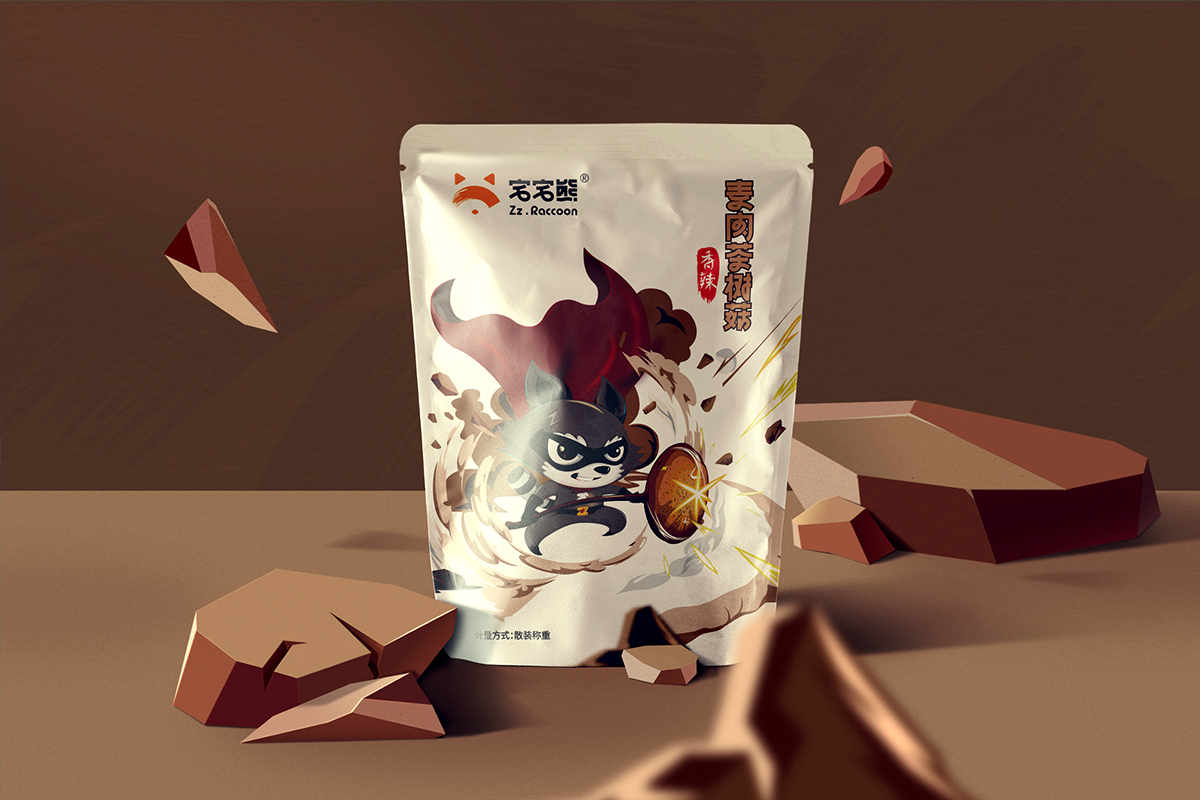 宅宅熊,在于一個(gè)“宅”字。我們通過精細(xì)化人群定位,以游戲直播、新媒體推廣渠道為主的差異化媒介,塑造了一只玩味、酷帥、俠義的浣熊IP,結(jié)合動(dòng)漫游戲相關(guān)的IP角色植入到系列包裝視覺中,與目標(biāo)消費(fèi)群形成情感共鳴,成為互聯(lián)網(wǎng)休閑食品市場(chǎng)的新興寵兒。。